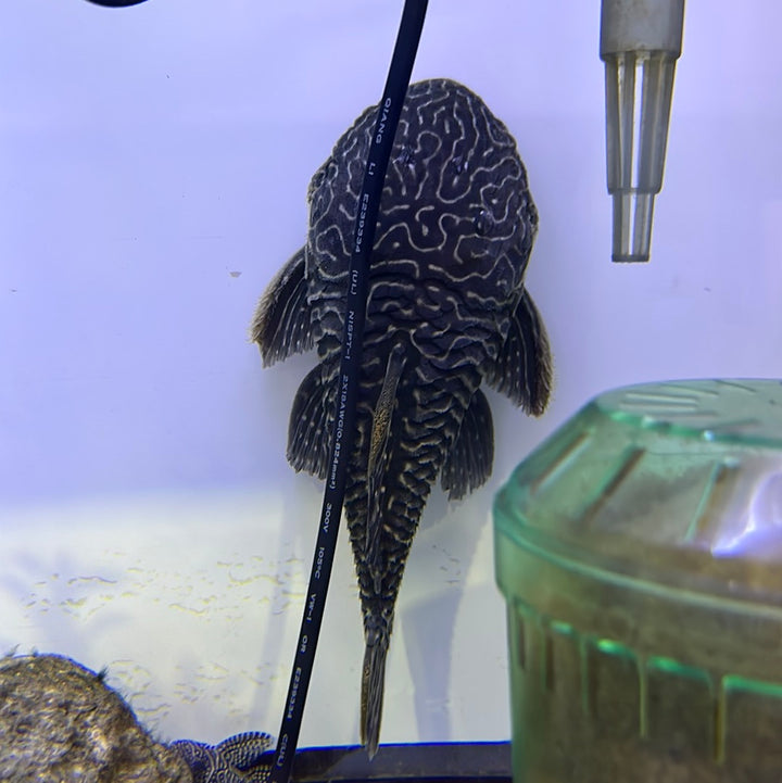 The species belonging to the Parancistrus genus have small scales that cover their bellies, and when viewed from above, their heads appear perfectly round. One distinctive characteristic of this species is the presence of a contrasting worm-like pattern on their bodies, along with dots on their heads. These unique markings contribute to the species' overall appearance and aid in distinguishing them from other related genera.