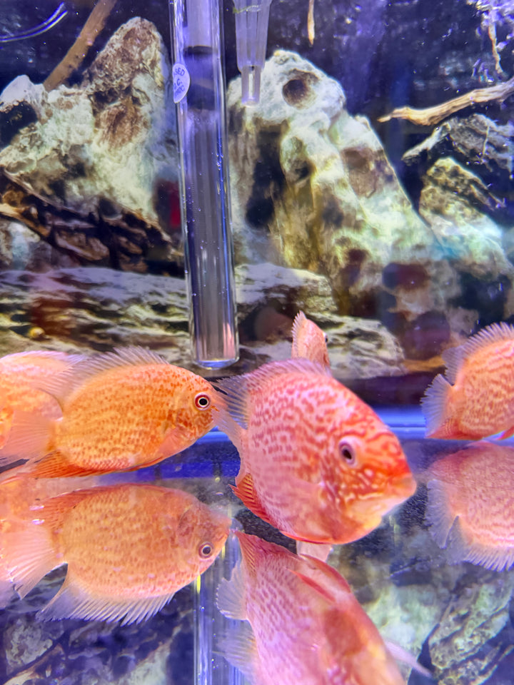 When it comes to aquarium setup, Red Severums prefer a spacious tank with plenty of swimming space. They appreciate the presence of hiding spots, such as caves, rocks, or driftwood, where they can retreat and establish territories. A sandy or fine-gravel substrate with some plantings can mimic their natural environment. It's important to maintain good water quality, regular water changes, and appropriate filtration to ensure their well-being.