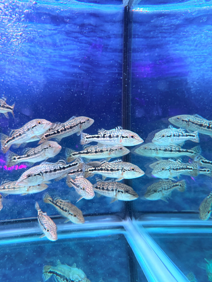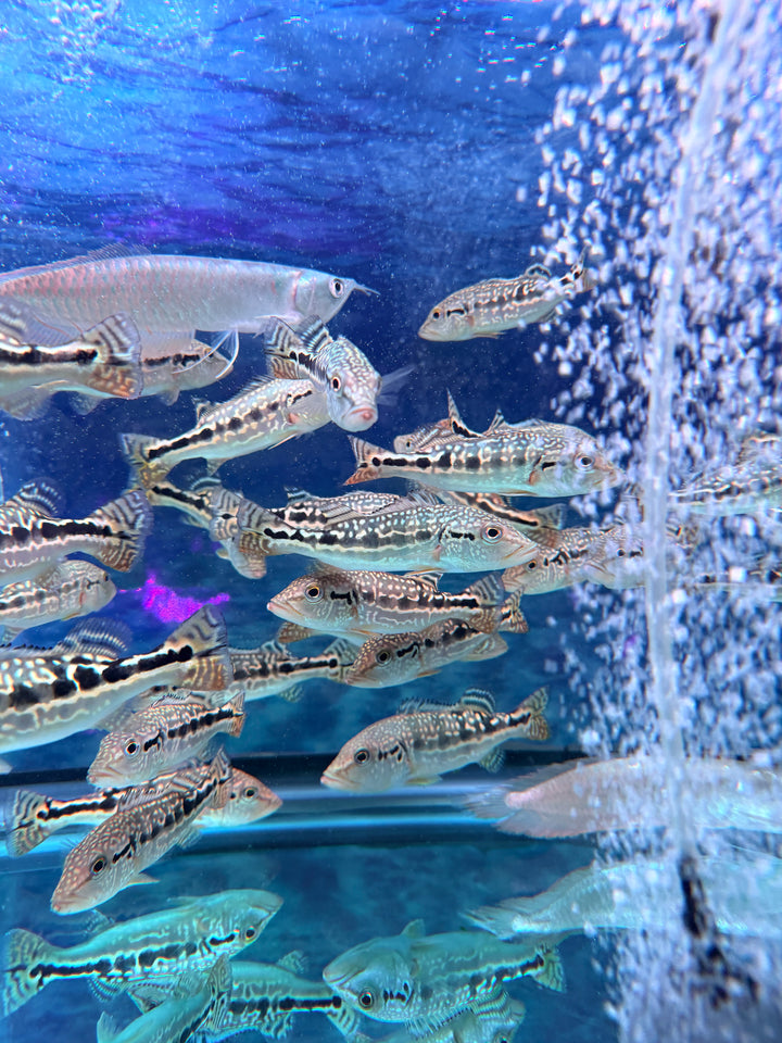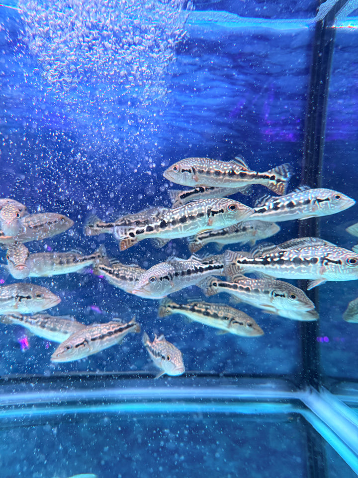 The Python Lace Peacock Bass (Cichla sp.) is a stunning and rare variant prized by serious collectors for its intricate, maze-like body pattern that closely resembles the elegant scales of a python. This unique morph displays bold lateral markings intertwined with delicate lace-like lines that shimmer under light, creating an exotic and predatory look. Like other members of the Cichla family, it exhibits impressive growth potential, powerful hunting instincts, and a commanding presence in any large aquarium. Combining the beauty of refined patterning with the raw power of a true apex predator, the Python Lace Peacock Bass stands out as a masterpiece among monster fish enthusiasts.